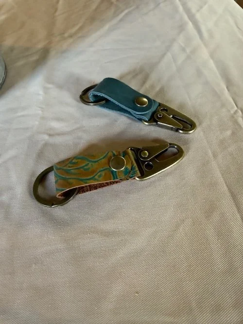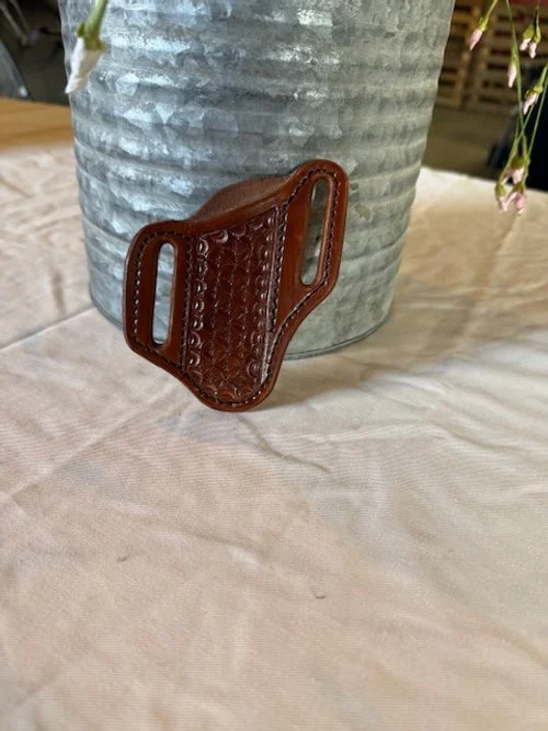 Key Chains $10.00 Notebook Cover with Field Notes Notebook $45.00 Leather Tote/Purse $250.00 IWB Holster $150.00 Avenger Style OWB Holster $150.00 Knife Scabbard $40.00 Valet Tray $50.00 Leather Belt $180.00 Golf Ball Sleeve - Floral Tooled $125.00 Golf Ball Sleeve - Geometric Stamped $75.00 Golf Ball Sleeve - Black $50.00 Pardee Bees Honey $15.00 Cayenne Pepper Hot Sauce $10.00 Leather Shop Candle $10.00